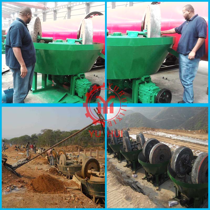 1、投資可大可小。投資小,可采用單臺(tái)式選礦,資金大,可群組式選礦。例如一組2臺(tái)、4臺(tái)、8臺(tái)、12臺(tái)都可以生產(chǎn)?傊还芮蚰C(jī)還是濕碾機(jī),都是起到碎礦達(dá)到所須目數(shù)為目的。