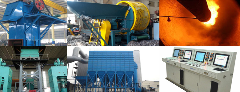 主要設(shè)備:金屬破碎機、斗式提升機、控溫爐、自動化控制系統(tǒng)、熱壓餅機(金屬屑壓餅機,生鐵屑壓餅機,熟鐵屑壓餅機,鋼屑壓餅機,粒子鋼壓餅機)、除塵器及附屬設(shè)備。
